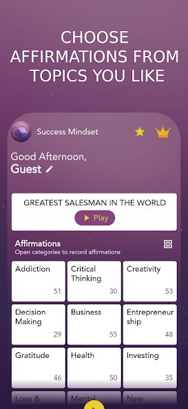 Get your daily motivation and develop a success mindset with positive affirmations and Inspirational quotes. The app contains positive quote reminders, daily affirmations notification and daily affirmations which are a powerful way to help you stay motivated and inspired when reaching for new goals and dreams.Success Mindset is the best motivation app designed to help you practice positive thinking, self-care and stay highly motivated with Inspirational quotes and positive affirmations. These daily affirmations and positive quotes are meant to help you affirm and manifest your dream life.